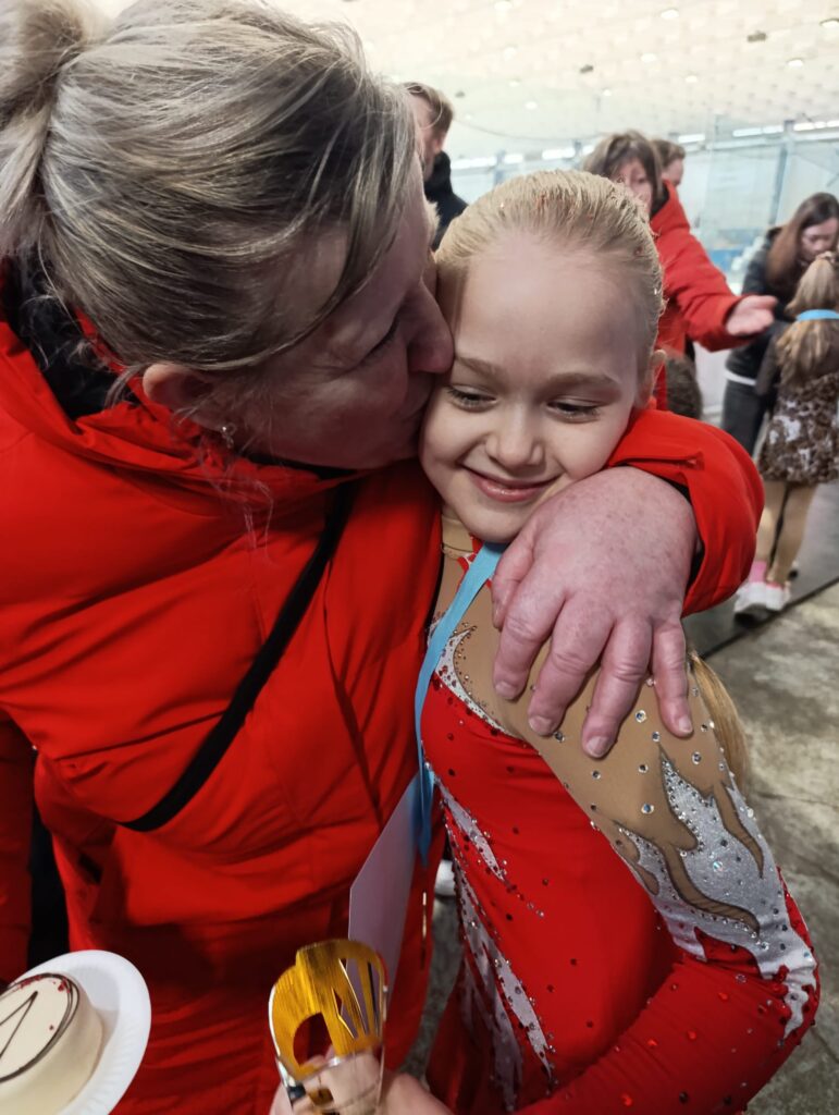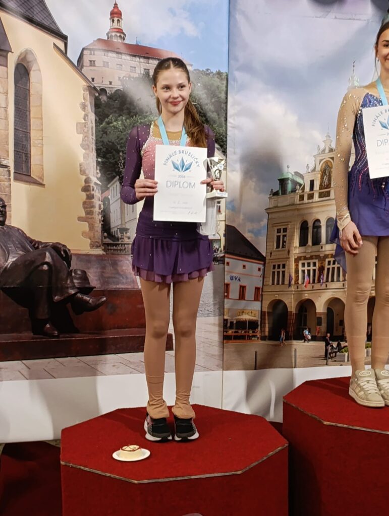 Závod v Náchodě začal kategorií Nováčci starší C, kde jsme měli hned dvě holčiny – Aničku a Agnesku ❤️ Anička nastupovala v první rozjížďce se startovním číslem 4. Zajela krásnou volnou jízdu, kde splnila nejen všechny prvky, ale dala jízdě i ❤️.Ve finálovém závodě si vybruslila tu nejkrásnější zlatou medaili 🥇a my na ní byli moc pyšní, protože to dokázala, i když nebyla úplně fit 👏👏👏 Agneska nastoupila na start závodu v druhé rozjížďce, se startovním číslem 9. Zajela svojí nejlepší volnou jízdu v této sezóně, usmívala se a prožívala každičký moment své jízdy. Nakonec z toho bylo pěkné 11. místo 🌸