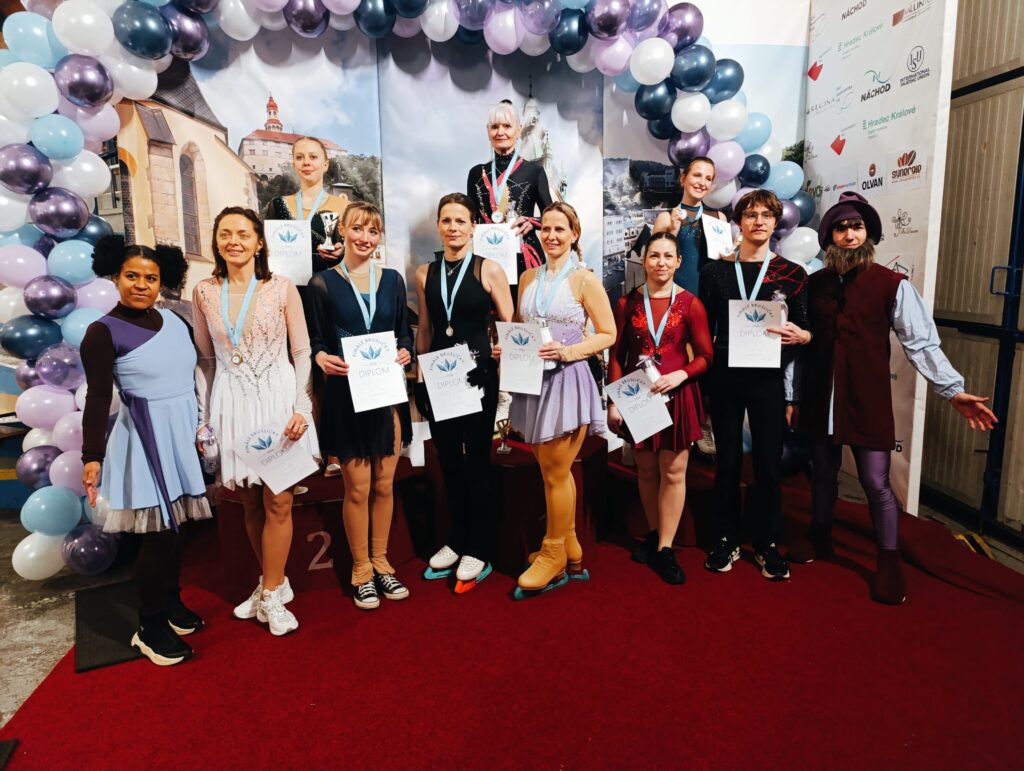 Poslední naší závodnicí v Náchodě byla Lucinka v kategorii Adult B. Díky pracovním povinnostem Lucinka nestihla slavnostní zahájení, ale závod už si ujít nenechala. A udělala dobře. Volná jízda se jí moc povedla a ještě jí ozdobila krásným úsměvem 😊 Byla se svým výkonem spokojená a trenérky taky. Lucinka si vybruslila 8.místo 🌸
