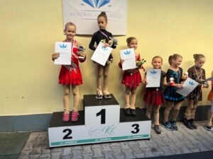 Jako poslední z naší kraso party, ale i jako poslední z celého závodu se postavila ke své volné jízdě NIKOLETTKA. I ona se prala s maličkou trémou, kterou ale zvládla překonat. Zajela moc krásně, soustředěně, s úsměvem a právem vystoupila na nejvyšší vstupínek a domů si odváží svojí první medaili – a hned zlatou 🥇